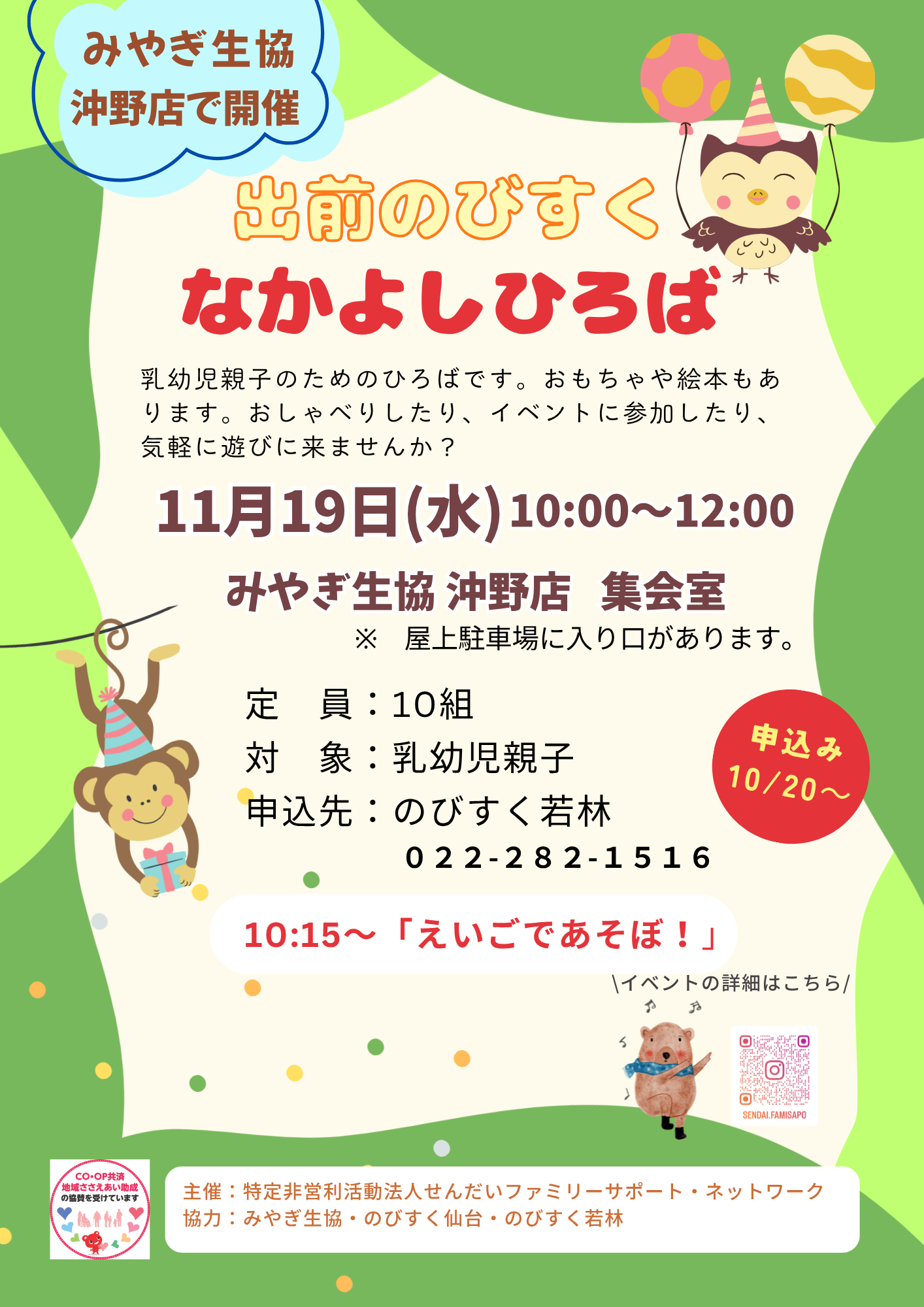 いつもはお買い物に行くところ。そこに、お子さんと一緒に立ち寄れる「出前のびすく」を開催します!
