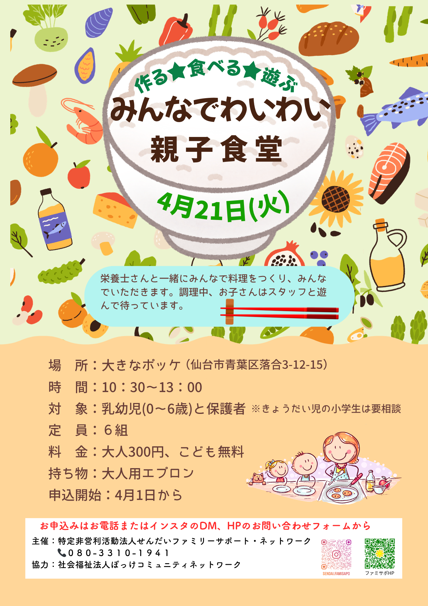 場 所 大きなポッケ(仙台市青葉区落合3-12-25)※駐車場もあります。